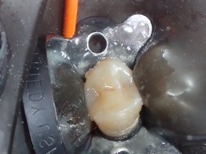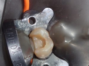 dans les soins on choisit toujours la solution la moins mutilante pour les dents,si il reste assez d’émail on préfèrera l’inlay à la couronne ,et ce même si la dent est dévitalisée! dent dévitalisée préparée pour recevoir l’inlay collage de l’inlay radiographie montrant les dents dévitalisées PrécédentSuivant