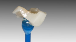 On doit ensuite reconstruire (ou réémailler) la dent avec une pièce de matériau collé que l’on nomme « onlay »